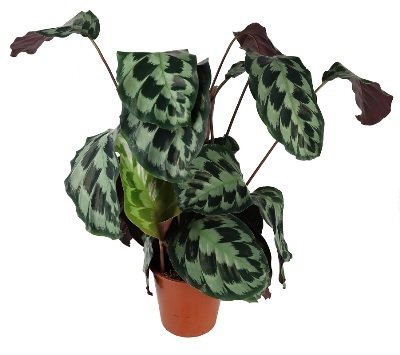 Žydėjimas – Calathea paprastai nežydi kambario sąlygomis, tačiau kartais gali pasirodyti nedideli žiedai.