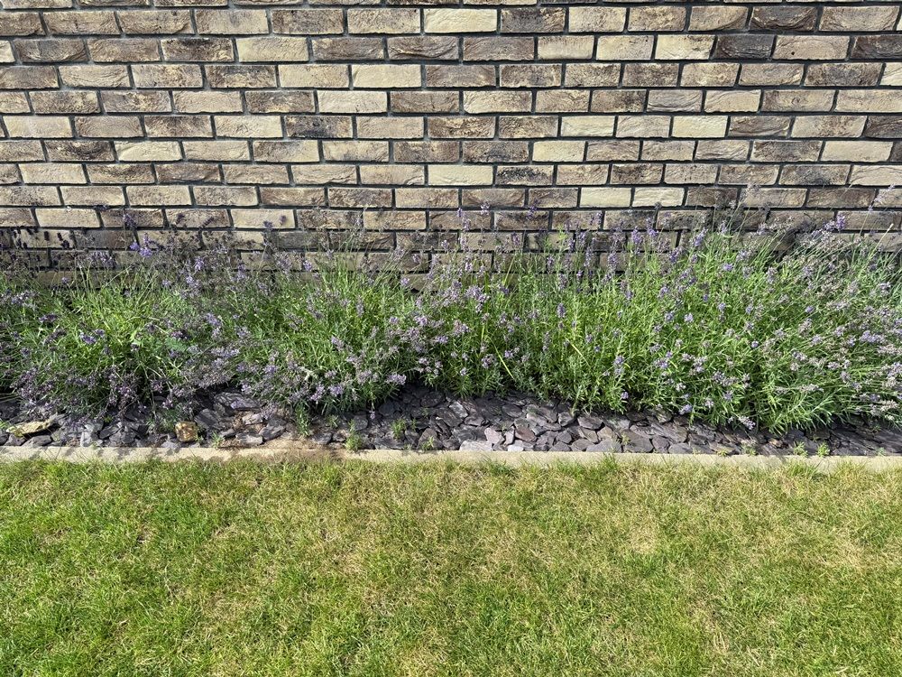 Daugiamečiai augalai kiemo gėlyne: miskantai, bijūnai, levandos.