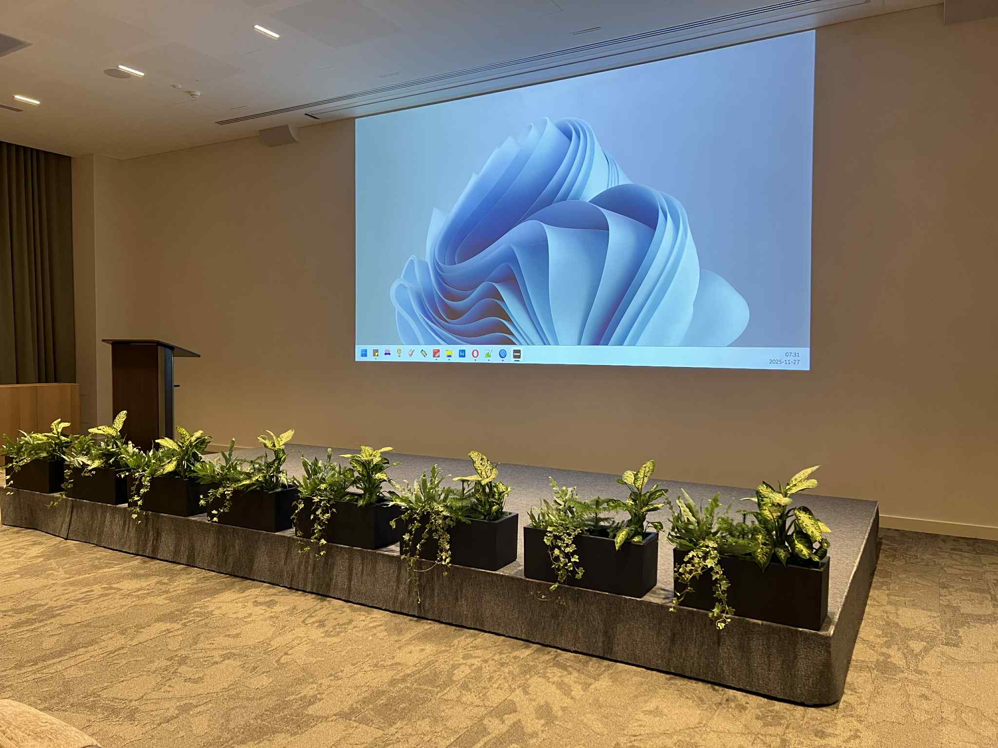 Konferencijai buvo nuomoti vazonai ir gyvi augalai, skirti renginio erdvės pagyvinimui. Augalai buvo naudojami siekiant sukurti natūralesnę, tvaresnę ir įkvepiančią aplinką.