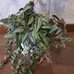 Lapai: siauri, strėlinės formos, tamsiai žali su sidabrinėmis gyslomis; apatinė pusė – bordo spalvos