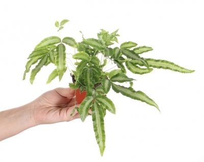 Lapai: Plunksniški, ryškiai žali su baltu dryžiu centre – labai dekoratyvūs.
